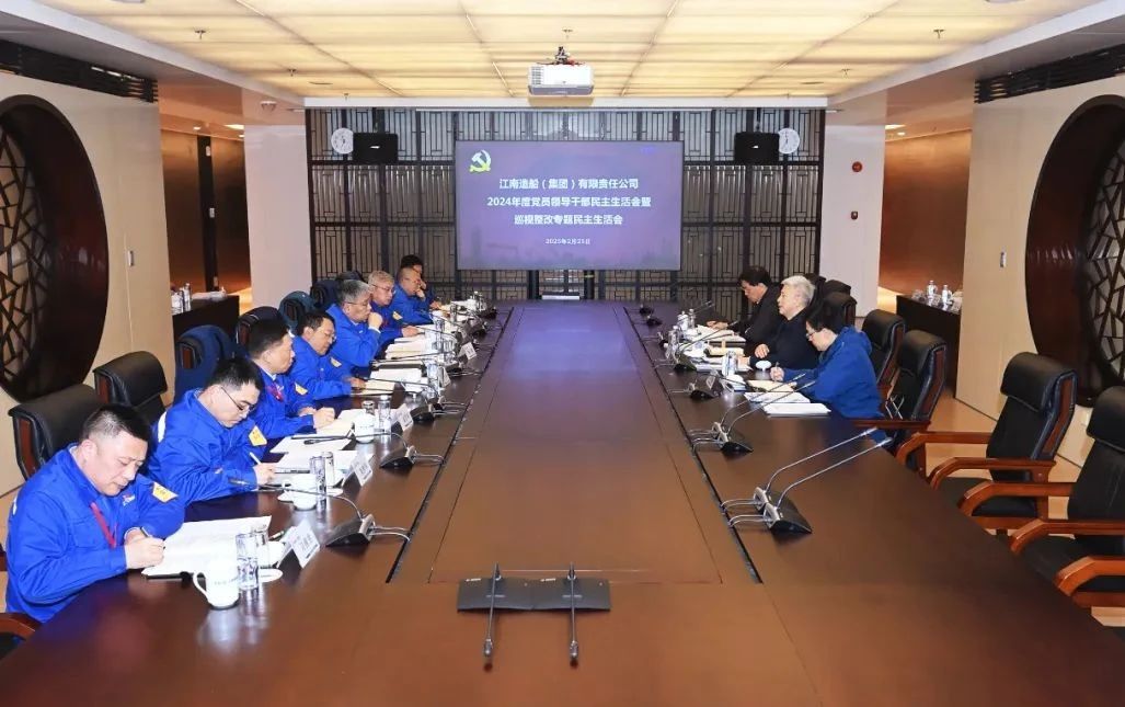 中船集团旗下江南造船党委召开2024年度党员领导干部民主生活会。集团公司党组书记、董事长徐鹏到会指导并点评。