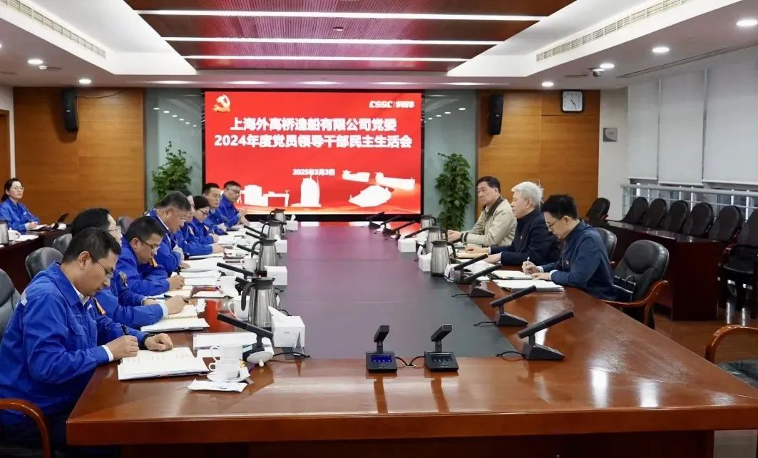 中船集团旗下外高桥造船党委召开2024年度党员领导干部民主生活会。集团公司党组书记、董事长徐鹏到会指导并点评。