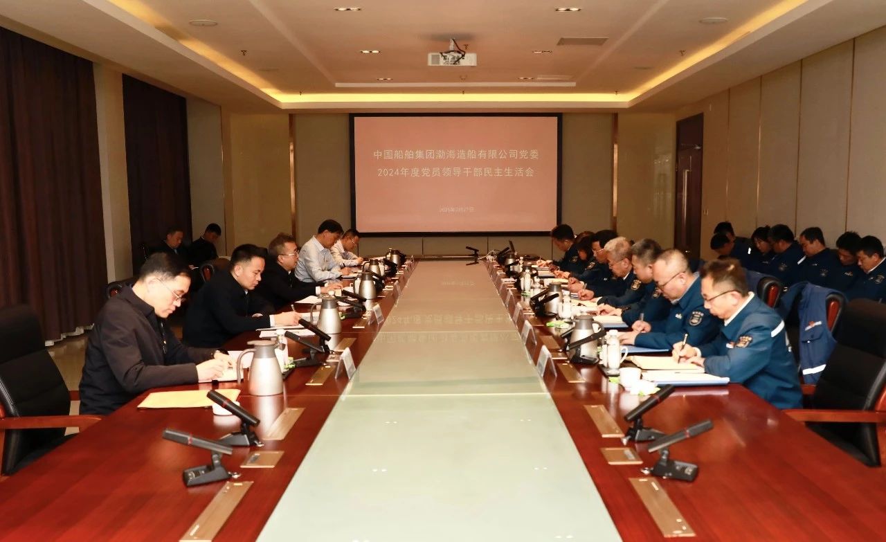 中船集团旗下渤海造船党委召开2024年度党员领导干部民主生活会。集团公司党组副书记、董事、总经理王国强到会指导并点评。
