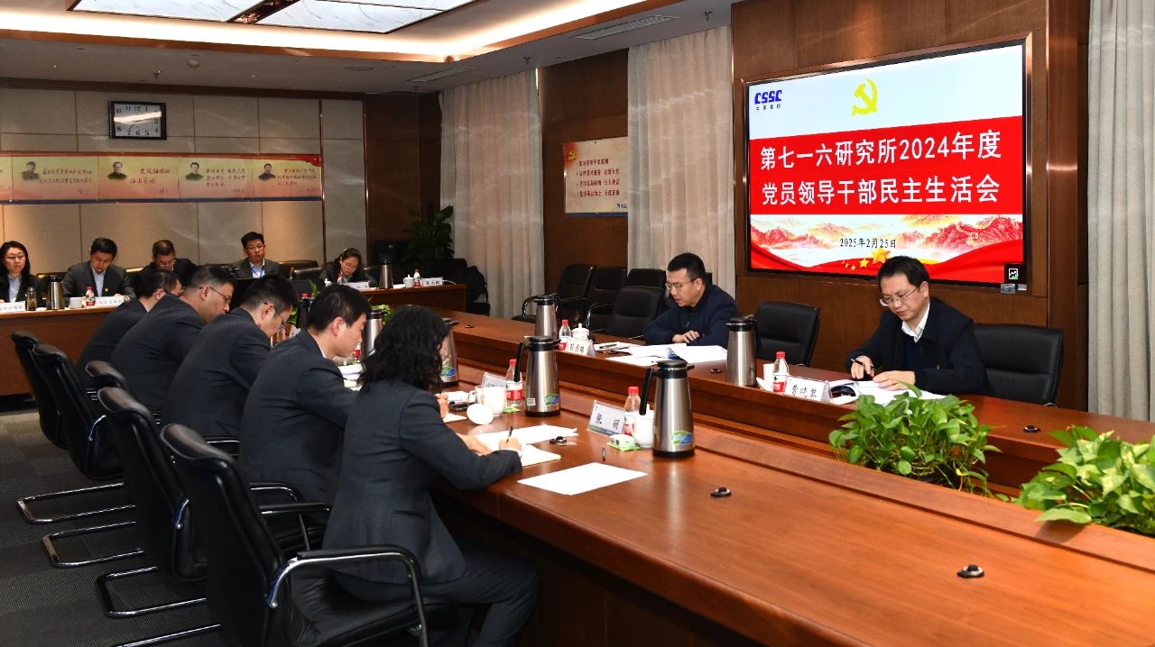 中船集团旗下七一六所党委召开2024年度党员领导干部民主生活会。集团公司党组成员、副总经理彭原璞到会指导并点评。