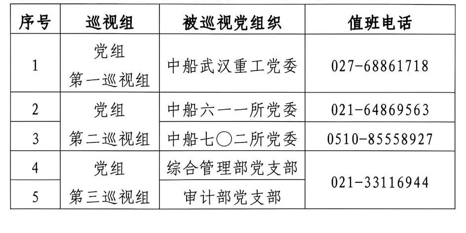 党组对巡视工作统一部署,近日,2026年度第一批次巡视组完成全面进驻。此批巡视分3个巡视组,分别对中船武汉重工党委、中船六一一所党委、中船七〇二所党委等党组织开展常规巡视,对总部综合管理部党支部、审计部党支部开展“四型”总部建设专项巡视。