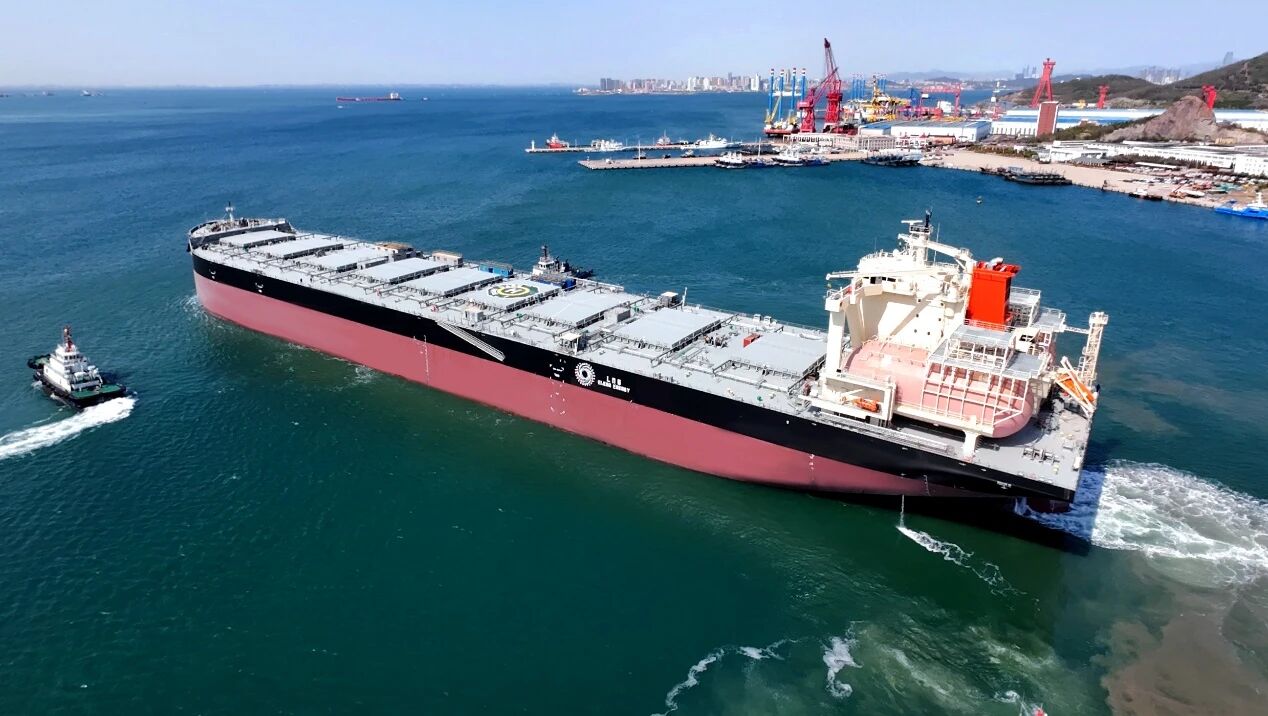 高性能绿色LNG双燃料21万吨散货船是北海造船建造的一款满足国际最新环保法规要求,兼具经济性和环保性的双燃料散货船。该船型营运能效CII满足2040年排放要求,可根据营运需求灵活转换燃料系统,具有综合能效卓越、绿色环保先进、营运经济灵活的特点。