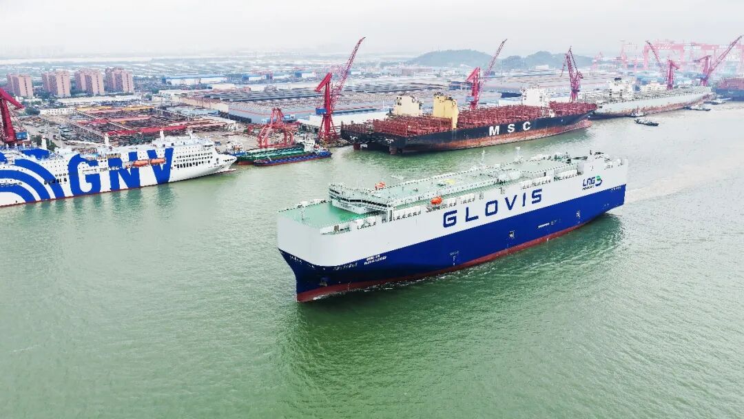 10800车LNG双燃料汽车运输船1号船离开码头