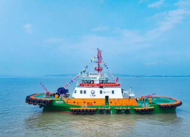 近日,由中船集团六〇五院设计的华南地区首艘纯电拖轮“穗港电拖01”号在广州港交付。该船将重点服务于广州核心港区,承担永利总站官方网拖带、靠离泊及护航等海上作业,助力广州港打造“零碳港口”。