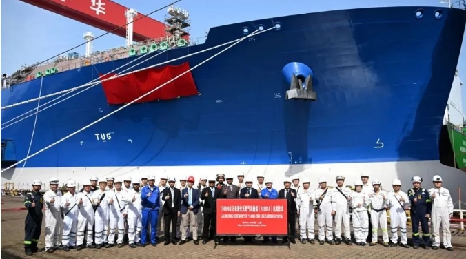 17.4万立方米LNG运输船“远海奋进”号(Ocean Inspiration)在沪东中华新厂区正式命名。
